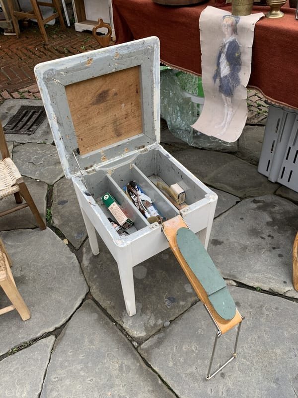 トスカーナ州、アレッツォの骨董市で見つけた小さな腰掛け、それほど古くはないけれど可愛いのでキッチンの踏み台に使おうと思ってこの腰掛けを売っているアンティーク修復専門・ディーラーの友人、リリィに値段を聞いてみました。彼女は”これはただの腰掛けではないの、ちょっとした仕掛けがあるのよ”とニコニコ顔。