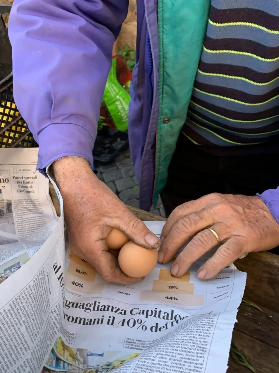 The smiling vendor put several hand fulls of zucchini flowers in a bag and asked, "How many eggs for the lady”? and carefully wrapped the eggs in a piece of newspaper.