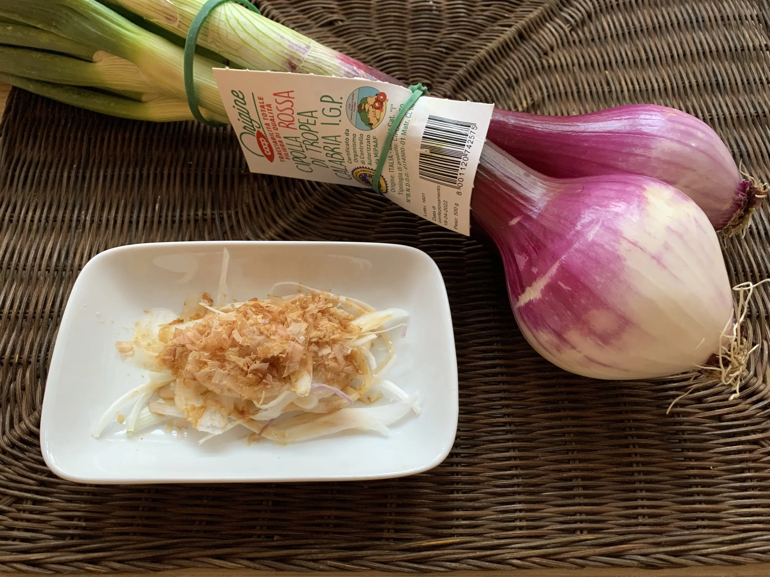 This leek is a peculiar onion that has been cultivated since the Middle Ages around the coastal city of Tropea in the beautiful province of Calabria. They are much sweeter than ordinary onions and have a mildly pungent but uniquely refreshing aroma. According to the locals, a good Toro Pair onion can be eaten like an apple. I am allergic to allium and cannot eat raw garlic or green onions, but not Tropea onions, and I am perfectly fine eating them raw. Sliced or chopped Tropea onions tossed with salad greens and a fine olive oil dressing make a wonderfully delicate salad (simple is better for the taste of Tropea onions). Tropea onions are always the first thing I look for in Italian markets. They are twice as expensive as regular onions, but well worth it. Like other vegetables, they are only sold during the season, so I am always delighted when I see them in the store. While savoring the deliciousness of Tropea onions, I think of the beautiful city of Tropea and the blue waters of Calabria.