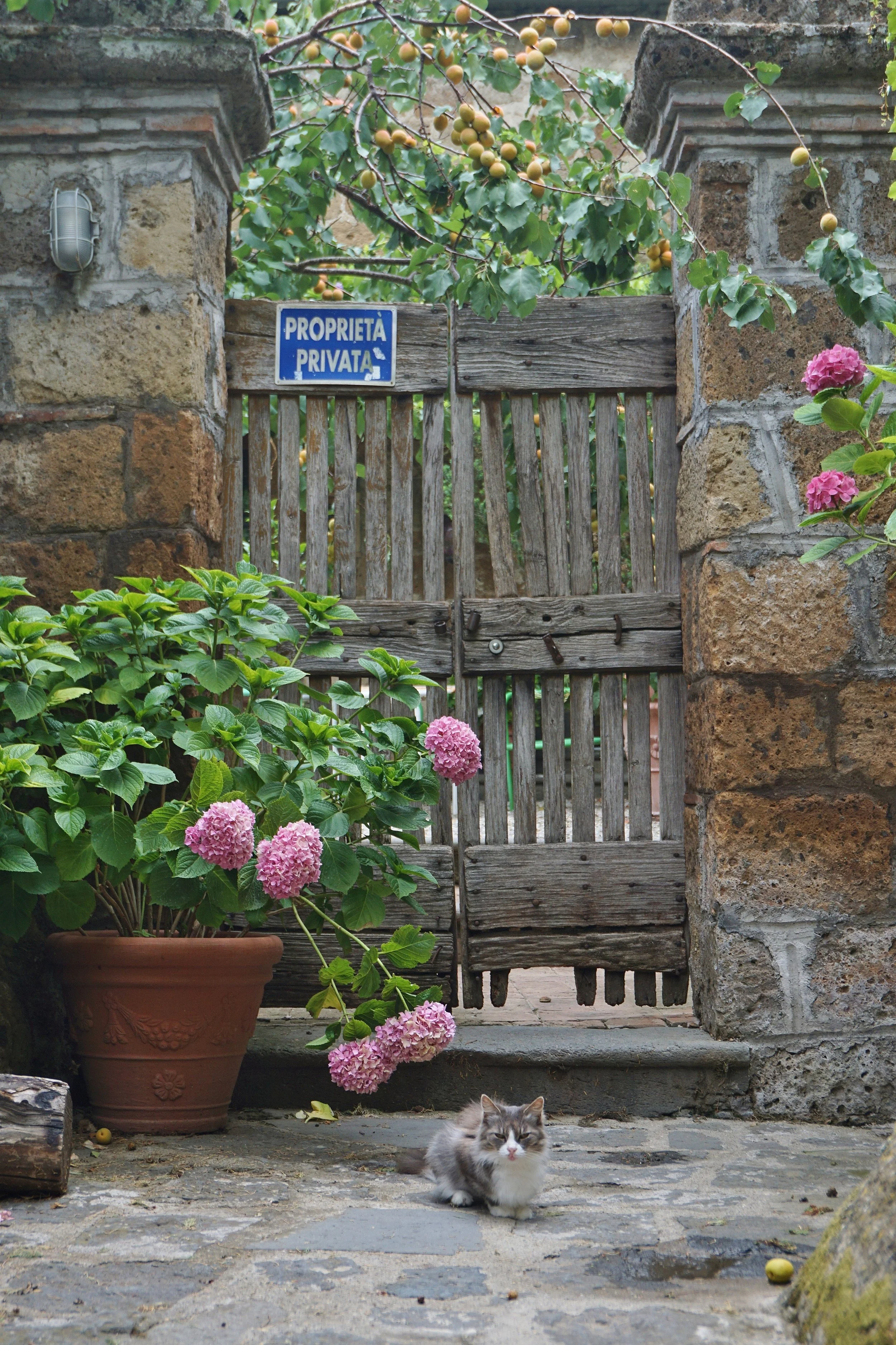 Founded by the Etruscans over 2,500 years ago, Civita is a city with a long history. However, earthquakes and landslides over the centuries have eroded the soft volcanic foundation on which Civita is built, and the town has shrunk over the years. In the Middle Ages, the plateau was three times the size of the present site and was home to over 3,000 people. But today the population is only 8 (12 in the summer); the population of cat "residents" is said to be much higher… Due to further collapse by earthquake and wind/rain erosion, Civita has been called "La città che muore" , "the dying city".
