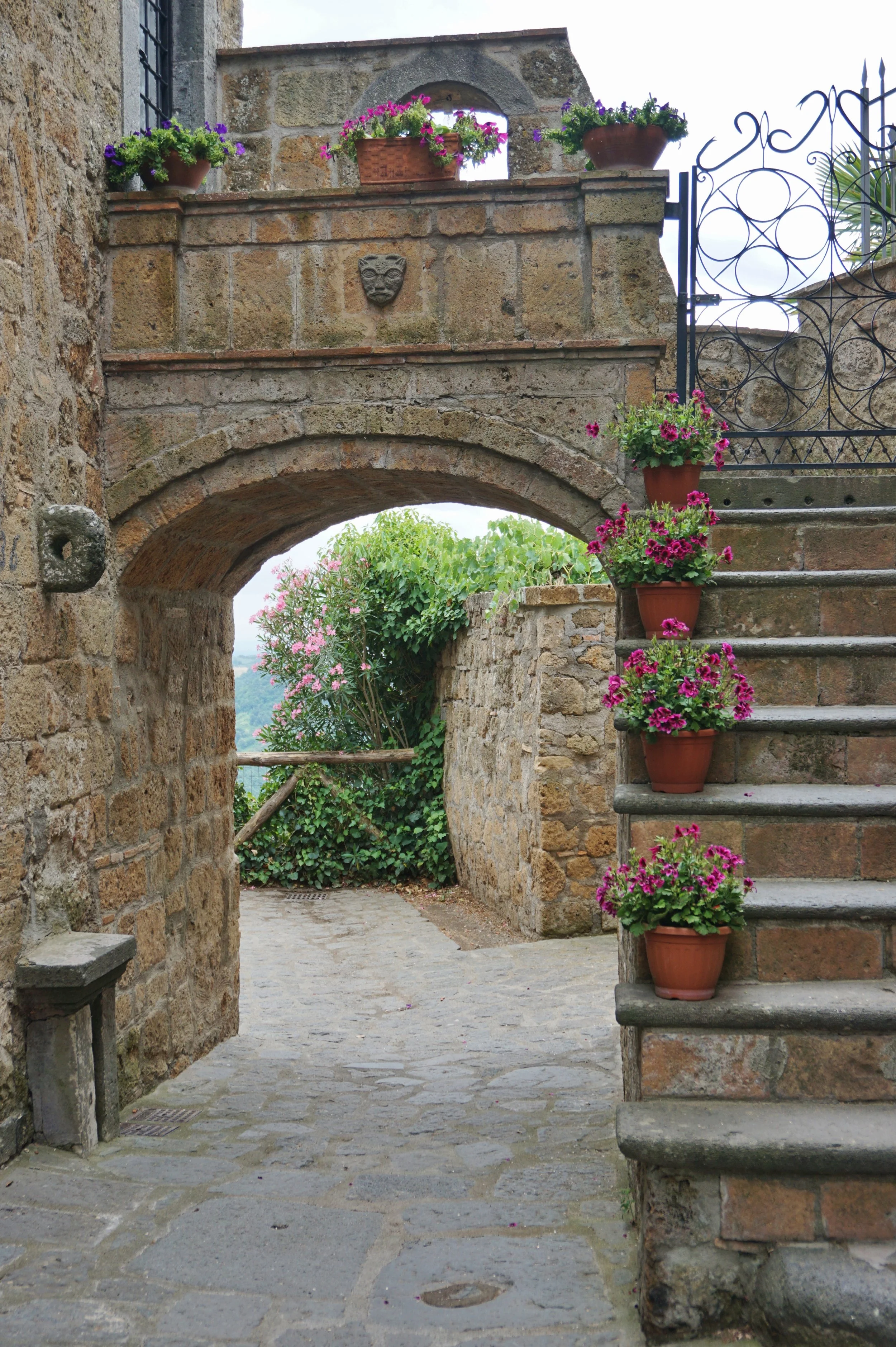 As one stands on the observation deck on the opposite site of the bridge to Civita, the view that strikes in front is simply breathtaking, similar to that of the Grand Canion. Crossing the 300-meter bridge (on foot only, built in 1995), the town is like something out of a fairy tale, with churches, squares, several cafes, and a few restaurants. Walking through the beautiful flower-filled streets, one will not sense the tragic history and fate of this beautiful hilltop village.